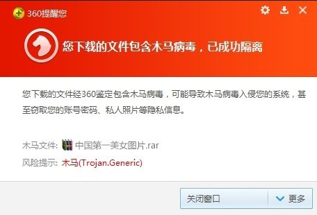 鞠婧祎當選“中國第一美女”引發(fā)巨大爭議的同時,她本人的網友關注度也空前高漲。在網上搜索“中國第一美女”,大量照片視頻和花邊信息中都潛伏著危險的訊號。經過360安全衛(wèi)士抽樣檢測,在部分網盤分享的“鞠婧祎素顏照”文件中,超過30%的文件其實是木馬程序壓縮包;鞠婧祎在線視頻的播放器染毒比例則更高,基本都捆綁了木馬或廣告插件。